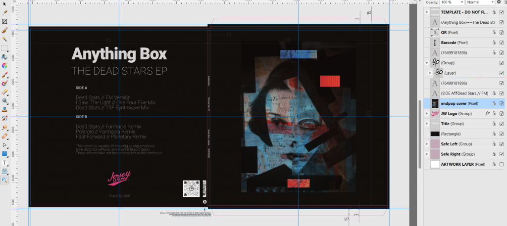 If I sent you to this page, it is to certify that I am the original artist (endpop) who produced the image that was used as the cover for Anything Box’s 12″ record release found here. I executed the work in 2020 and below this promo shot you will see a composite, or variation of the work.